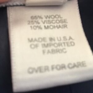Beautiful, lined, double breasted Oscar De La Renta Blazer. The colour is a grey/blue. The pin stripes are beautiful, light yellow, and a purple/pink. The material is wool, viscose and mohair, very soft. Comes with extra buttons for both the sleeves and front.