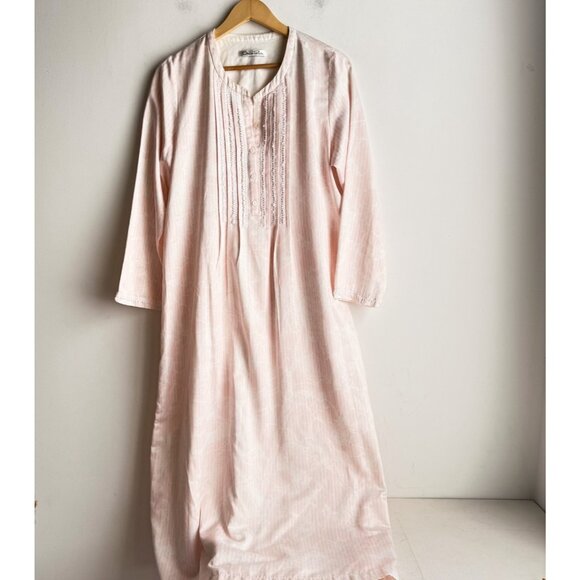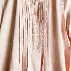 Oscar De la Renta Pink White Nightgown Long Sleeve M.