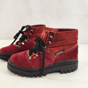 Oscar Sport womens red fur boots, size Euro 39 - approx US 8, boots are exactly 11" long. Excellent condition, almost no signs of wear. Fur has a couple of small imperfections.