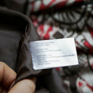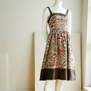 100% Silk. Smocked back detail and square neck. Size zipper closure. Skirt is lined.
