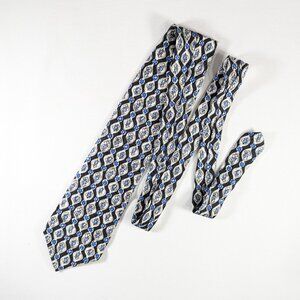 USA made necktie by Oscar de la Renta in 100% silk. The white and blue pattern against the black reminds a lot of hand painted delftware porcelain.