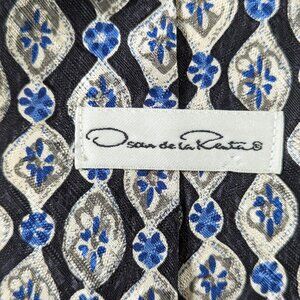 Oscar de la Renta 100% silk necktie, black white blue chinoiserie pattern