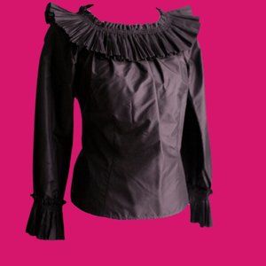 Ruffled collar and sleeve cuffs. Classic black collar with concealed zip fastening on the side. Condition: Like new only used once. no signs of wear