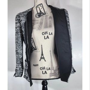 Oscar de la Renta Black and White Bouclé-Tweed Jacket, Size 2