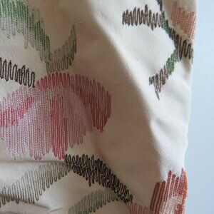 Elegant cream maxi skirt with floral design. Features subtle pink and green accents. Perfect for a sophisticated look.