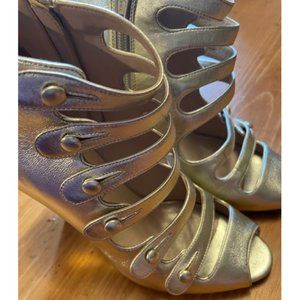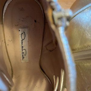Oscar de la Renta Gold Metalic Leather Wedge Gladiator Booties Size 8
