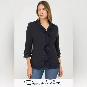 Oscar de la Renta Navy Ruffle Blouse