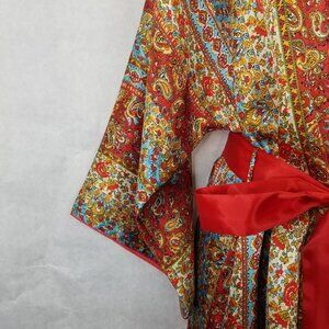 Oscar de la Renta Robe Women S/M Pink Label Paisley Loungewear Satin Knee Length
