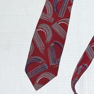 Oscar de la Renta Red Blue Gray Silk Tie