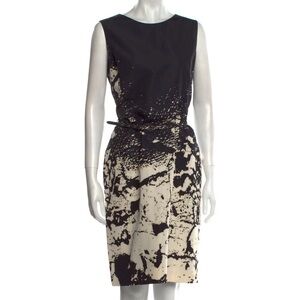 Oscar de la Renta black & cream belted silk sheath dress - size Large (L)