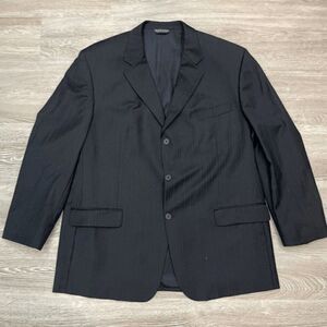 Oscar De La Renta Mens Black Suit Blazer Jacket 100% Wool Button Down Size 48R