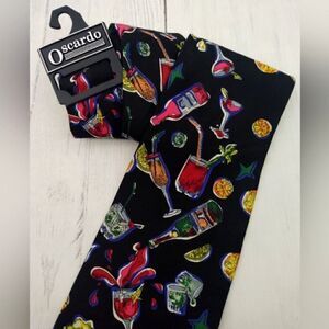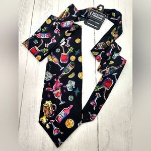 Bright and vibrant in colour, beautiful Men's Silk Neck Tie,black background with a variety of drink - barware, everything from champagne to draft beer. New Perfect for a party,or your bartending gig