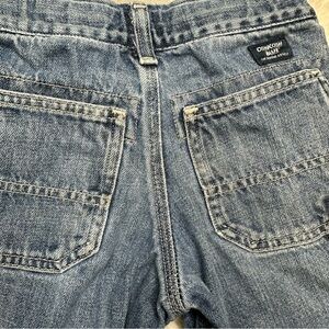 Stylish blue denim jeans by Osh Kosh. Features a distinctive brass button.