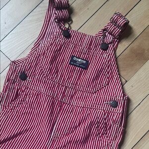 OshKosh B'gosh Baby Red and White Striped Cotton Overalls Railroad Stripe 6 Mo