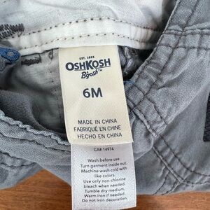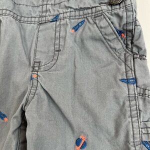 These gray overalls by OshKosh B'gosh feature a traditional bib-style front with adjustable shoulder straps and full-length legs. An all over print space theme adds some colour. Leg snaps for easy changes. Khaki type material feeling.