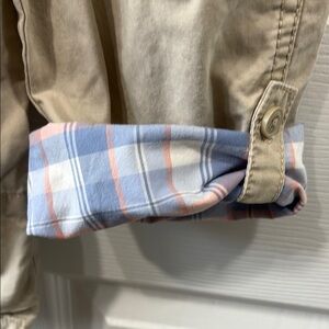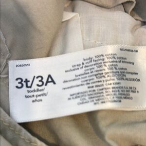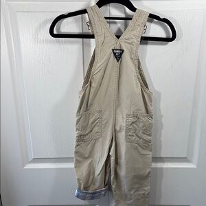 Stylish tan overalls by OshKosh B'gosh. Features adjustable straps and front pocket. Perfect for playtime.