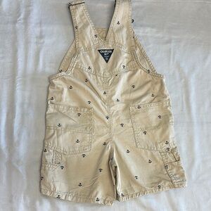 OshKosh B'gosh Tan Overall shorts w/ anchor design & adjustable shoulder straps