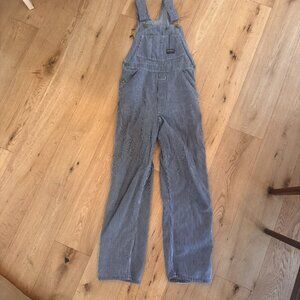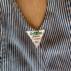 selling my beloved vintage oshkosh b’gosh overalls — they just don’t fit me anymore. the classic blue-and-white pinstripe with pops of green stitching. i wish they still fit because they really are the perfect overalls.