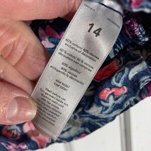 Can not smaller up to a 10/14- cute floral top with elasticized hem- long sleeves, cute look paired with jeans and sandals