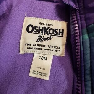 VGUC Oshkosh girls 18 months hooded jacket with faux fur trim. The back and hood are fleece lined. No defects