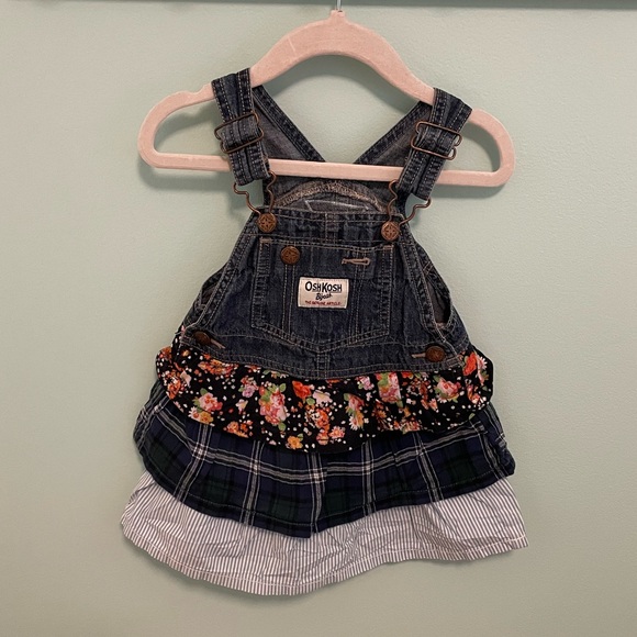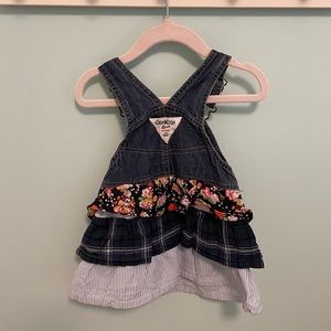 Oshkosh B'Gosh Vestback Tiered Floral Plaid Overall Dress