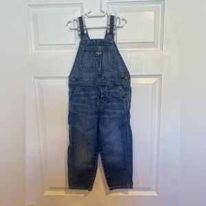 Timeless style and durable comfort come together in these authentic OshKosh B’gosh denim overalls. Made from high-quality cotton denim, these overalls are perfect for active toddlers. With adjustable shoulder straps, classic front bib pocket, and side button closures, they’re easy to wear and built to last.
