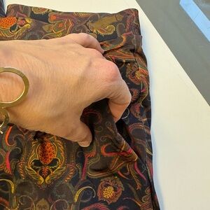 Osklen TAIS Gold & Brown patterned wide bohemian pocketed ankle Pants size Large