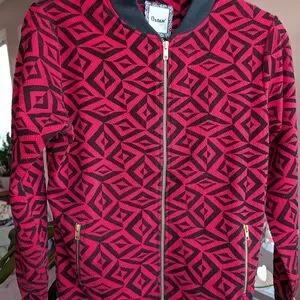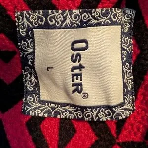 Vintage wool knit Oster bomber jacket with a cool geometric pattern and zip up pockets. It is a large, but it fits on the smaller side.