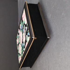 Otagiri Black Lacquered Jewelry/Trinket Box with Pink Florals.