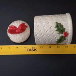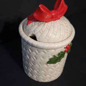 Otagiri Handcrafted in Japan Holly Berry & Bow Jam Jar w/ Lid 5 1/2" Tall