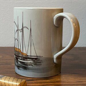 Otagiri Stoneware Mug Nautical Yachts Boats Seagulls Pier