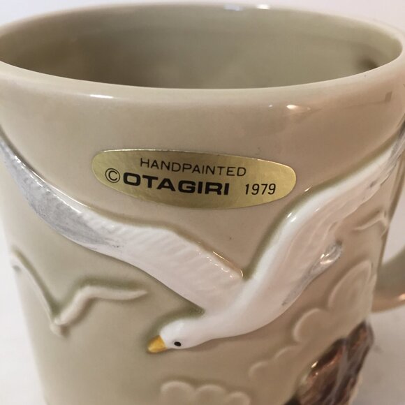 Otagiri Vintage Raised Seagull Ocean Embossed Hand Painted Coffee Mug Cup