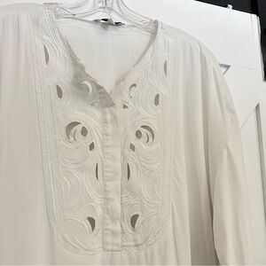 Chic cream tunic with delicate embroidery. Perfect for versatile styling.
