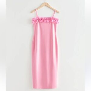 &Other Stories Pink Organza trimmed whimsical midi dress