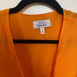 This dress is perfect for a summer party! Lightweight cotton-blend with puffed sleeves. Marked size 4 but as it's a wrap dress there's some wriggle room. Worn only once!