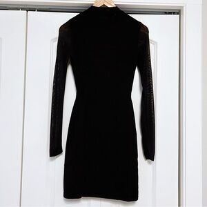 & Other Stories The Little Black Asymmetric Dress, mini black fitted dress with long sheer/mesh sleeves