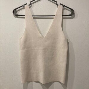 & Other Stories White Ribbed Knit V Neck Cami Top