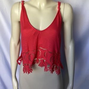 Others Follow Coral Sleeveless Tank with Crochet Hem