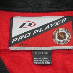 Up for sale is a vintage Ottawa Senators jersey by Pro Player. It is the team's first alternate jersey with a red base colour with black and white swashes. The front of the jersey has the team's second Senator head logo. Each shoulder has the team's original logo crested on. The back of the jersey is blank so it is perfect for personalization. What a great vintage jersey do not miss out on it.