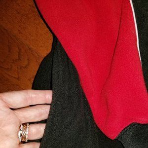 In good condition. I believe it used to have a drawstring on the bottom, but the bottom edge is finished so I didn't notice until I checked the inside while taking the photos.