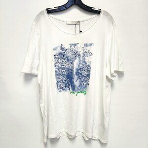 Oui Women's White/Blue Graphic "Love Yourself" Tee Size 16
