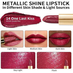 Oulac Women Metallic Dark Red Creamy Full Coverage Lipstick One Last Kiss 14