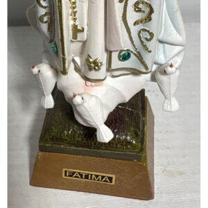 Our Lady Of Fatima Resin Religious Statue 7"Tall Hand Painted Doves Rhinestones