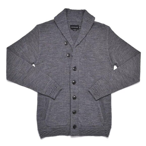 Outclass Shawl Collar Cardigan Gray Wool Blend Pockets Large