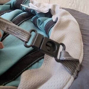 Outdoor Research sun hat with a wide brim. Teal/Green in color. Perfect for outdoor adventures. Kids Large, adjustable snap strap.