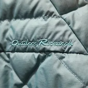 This is an Outdoor Research Placid Down Jacket. Shell: 100% Polyester Lining: 100% Nylon Insulation: Duck Down 85% Down Cluster, 15% Feathers. The ribbed hem, cuff, and collar all help to lock in heat while adding an extra touch of comfort to the fit of the jacket.