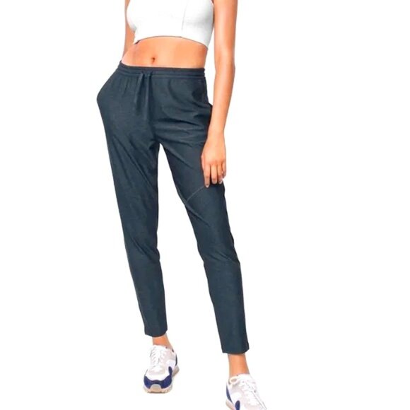 EUC women’s size small, oversized fit, Outdoor Voices Joggers (I believe these are the Sunday Sweatpants) in a nice dark grey/blue colour with black heathering, elastic adjustable waist, side pockets