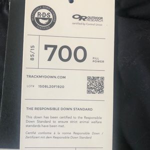 Mid calf black 700 fill down with funnel type neck, down hood . Rare ,tags