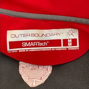 Outer Boundary jacket with SMARTech. Lightweight warm jacket. Great for running, sports or used as fall or spring wind jacket. Warm fleece lining. Size medium. Machine washable. Zippered pockets.