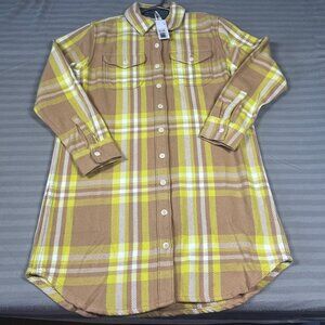 Outerknown Shirt Womens Small Brown Yellow Plaid Organic Cotton Long Button Down
